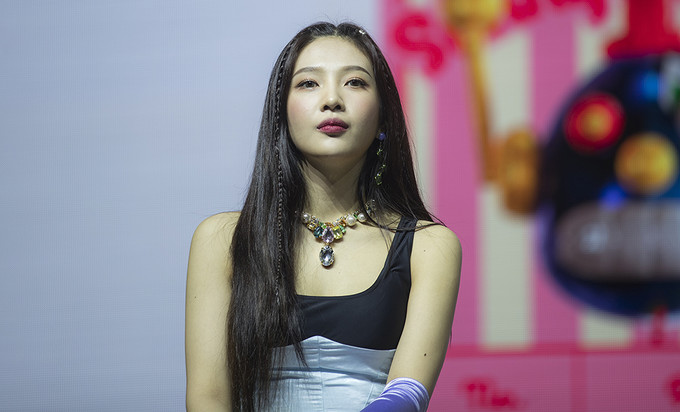 그룹 레드벨벳 조이가 19일 오후 서울 용산구 블루스퀘어에서 열린 미니앨범 'The ReVe Festival Day 1' 쇼케이스에서 질문에 답하고 있다.