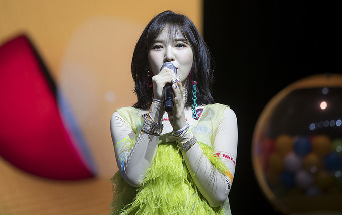 그룹 레드벨벳 웬디가 19일 오후 서울 용산구 블루스퀘어에서 열린 미니앨범 'The ReVe Festival Day 1' 쇼케이스에서 질문에 답하고 있다.