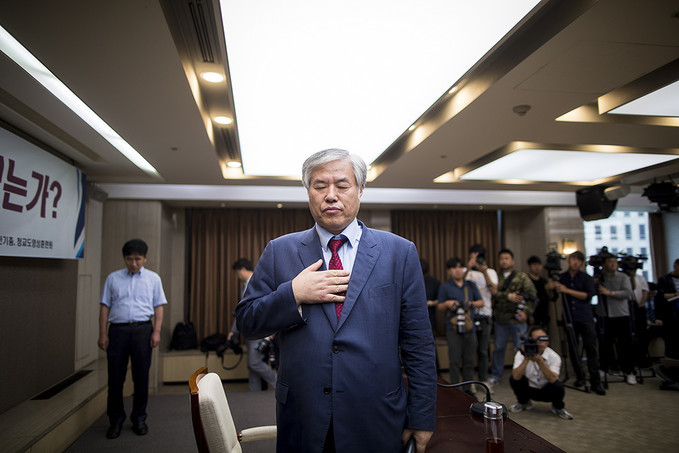 전 목사는 이날 오후 서울 중구 프레스센터에서 열린 '대한민국 어디로 가고 있는가?' 기자회견에서 "문 대통령이 누가 뭐라고 하기 전에 청와대에서 나와야 한다"고 주장했다.