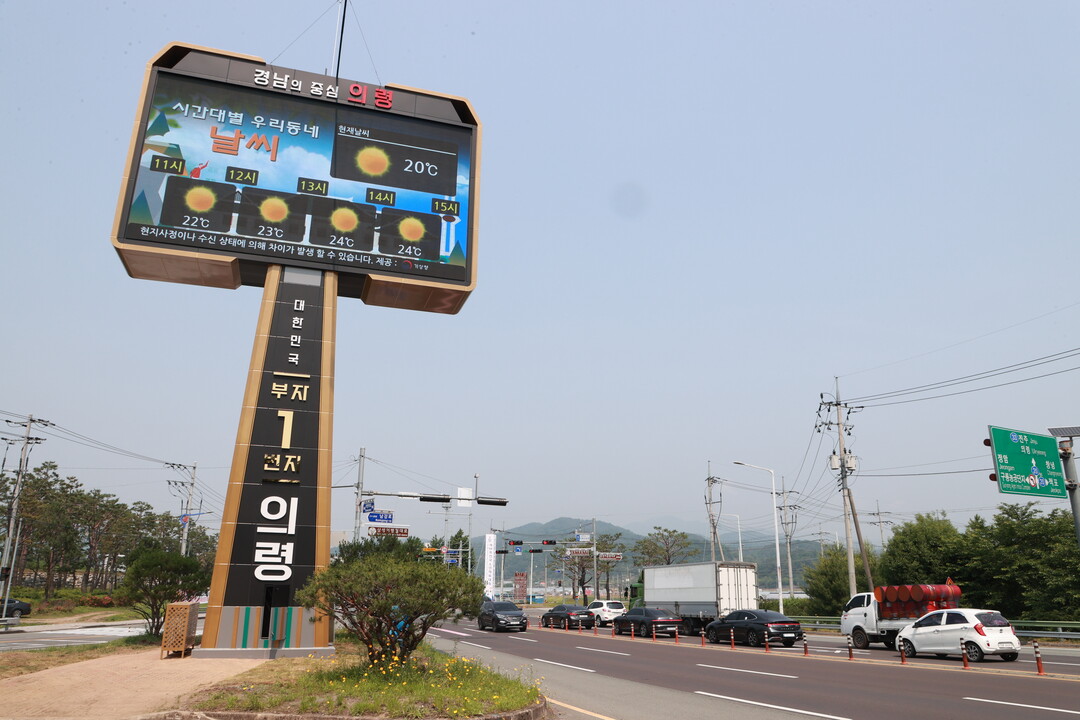 의령군은 의령읍 백야오거리 교차로에 재난상황 홍보전광판을 설치, 6월부터 본격 운영하고 있다고 밝혔다.
