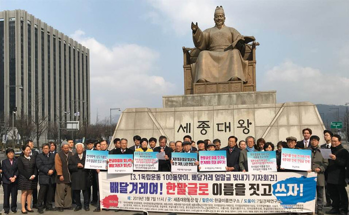 한글 단체들은 3·1운동 및 대한민국임시정부 100주년을 맞아 본디 온겨레가 쓰던 우리 말글로 이름을 되살리자고 한목소리를 냈다.
