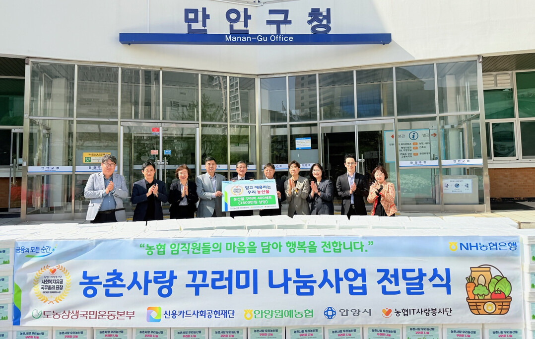 NH농협은행은 자사의 IT사랑봉사단이 지난 24일 안양원예농협과 함께 경기도 안양시를 찾아 농산물 꾸러미 400세트(1600만 원 상당)를 전달했다고 25일 밝혔다.