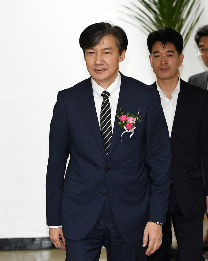 ▲ 조국 신임 법무부 장관이 9일 오후 경기도 과천시 정부과천청사에서 열린 취임식에 참석하고 있다. [정병혁 기자]