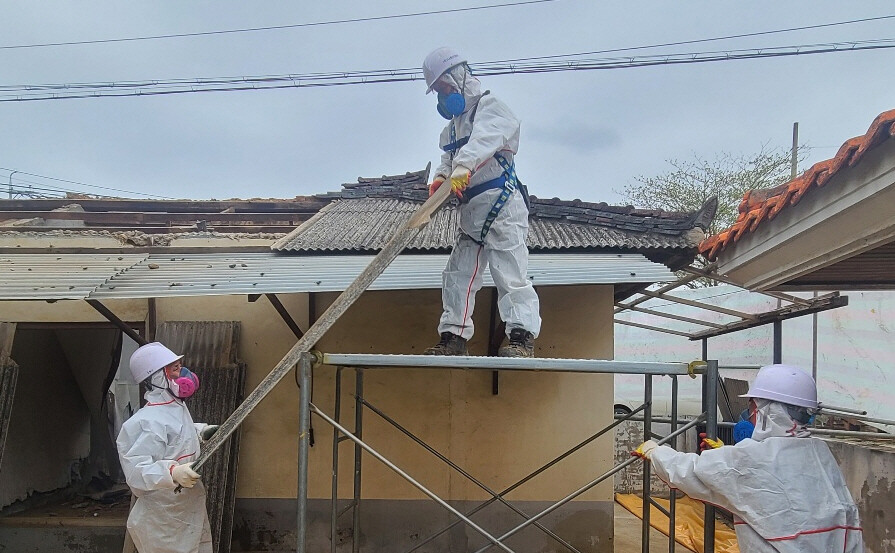 | ▲ 지난해 롸성시기 지원한 슬레이트 지붕 철거 작업 모습. [화성시 제공] |