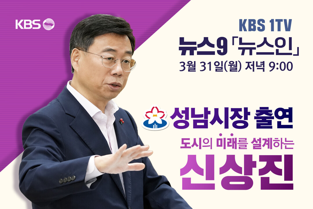 신상진 경기 성남시장이 31일 오후 9시 KBS 1TV 뉴스9 '뉴스인'에 출연해 도시의 미래를 설계하는 민선 8기 성남시 주요 성과 소개한다.