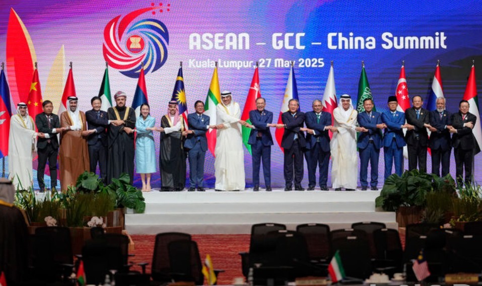 | ▲ 중국과 동남아시아국가연합(ASEAN), 걸프협력회의(GCC) 국가 정상들이 지난 27일(현지시간) 말레이시아 쿠알라룸푸르에서 개최한 미국 관세 대응 회의에서 손을 맞잡고 있다. [뉴시스] |
