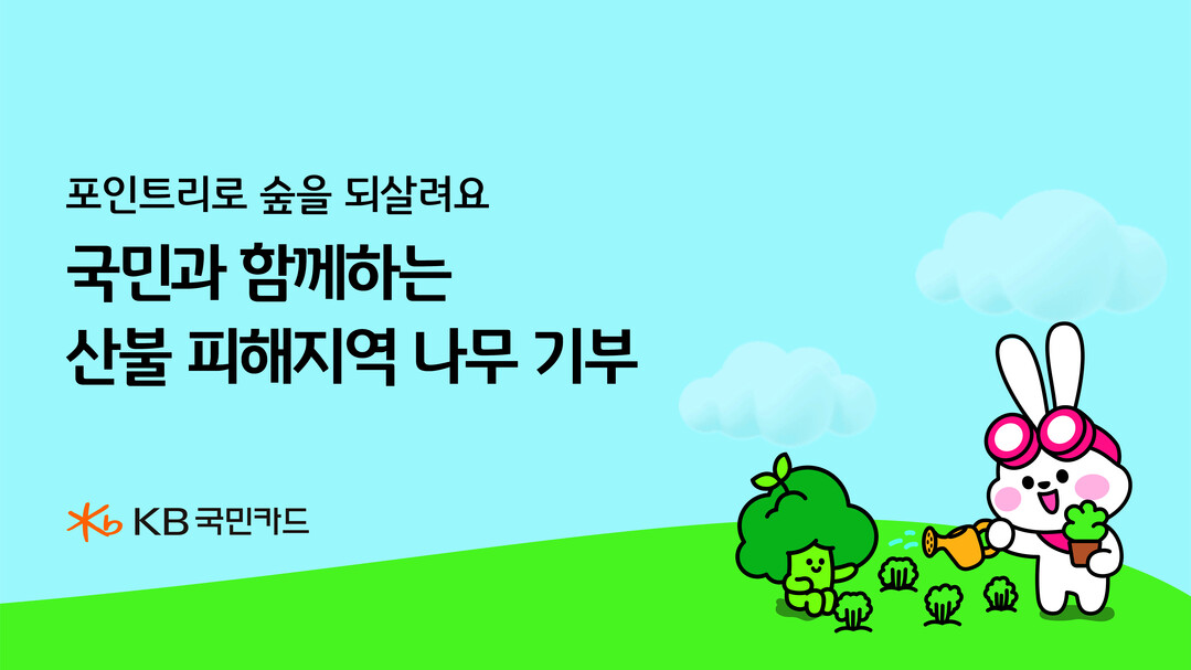 KB국민카드 관계자는 "고객이 기부한 포인트로 산불 피해 지역을 다시 푸르게 만들 수 있다"며 "많은 분이 이번 캠페인에 관심을 갖고 참여해 주시길 바란다"고 밝혔다.