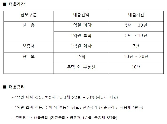 이 대출은 저금리 장기상환 상품이다. 적용 금리와 만기는 대출 유형과 대출금 잔액에 따라 달라진다. 일례로 1억 원 이하 신용대출을 받았다면 금융채 5년물 금리에 0.1%포인트의 더한 금리가 적용된다. 대출기간은 최대 30년까지 상환 계획에 맞춰 정할 수 있다.