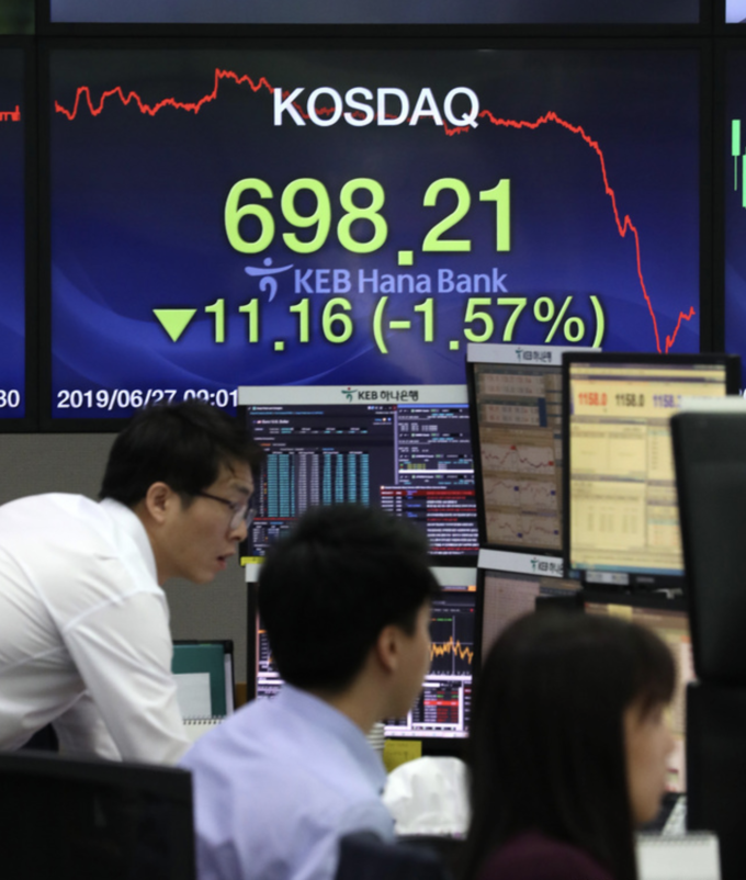 ▲ 무자본으로 기업을 인수합병(M&A)한 뒤 회사자금을 빼돌린 혐의를 받는 코스닥 상장사 지와이커머스 실소유주 이모(62) 씨 등 6명이 재판에 넘겨졌다. 사진은 지난 27일 오후 서울 중구 KEB 하나은행 딜림룸의 모습. [뉴시스]