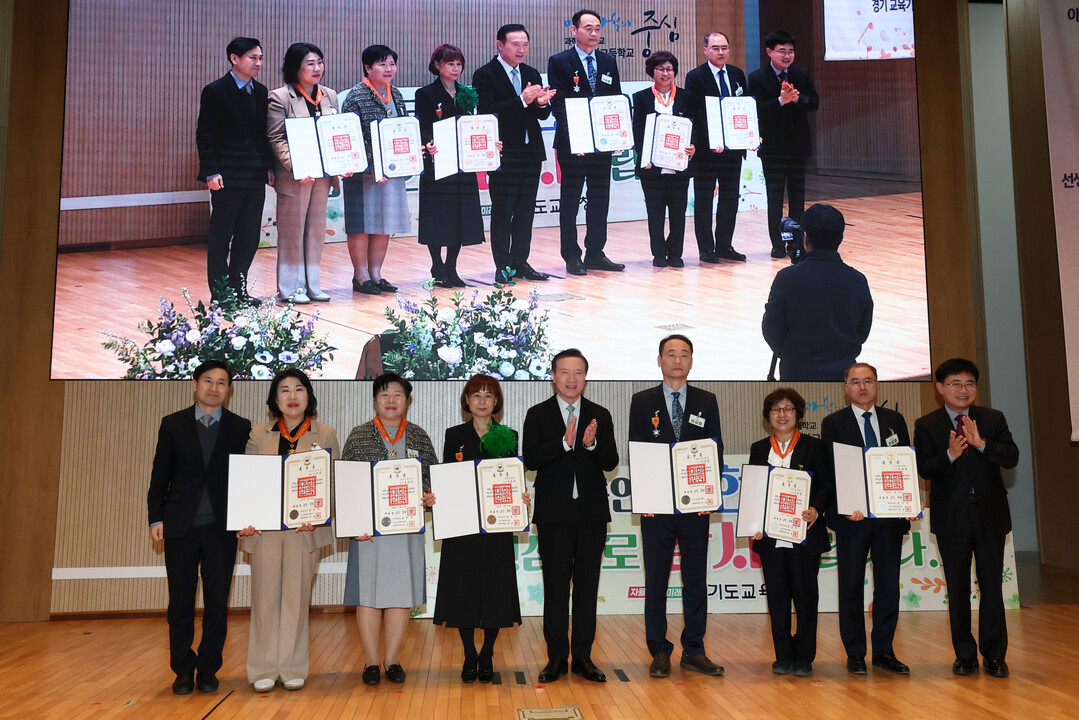 전수식에는 임태희 교육감을 비롯해 김진수 제1부교육감, 홍정표 제2부교육감, 도교육청 주요 관계자 등이 참석해 퇴직 교원의 영광스러운 순간을 축하했다.