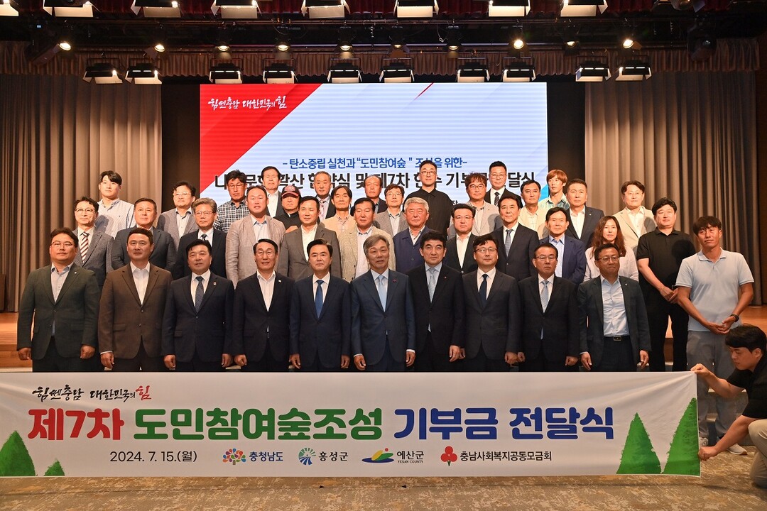 충남도는 15일 덕산 스플라스 리솜에서 도민 참여 숲 조성을 위한 나눔문화 확산 업무협약식 및 제7차 기부 전달식을 개최했다.