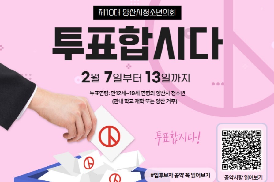 이번 투표에는 양산시에 거주하거나 관내 학교에 재학 중인 만12~19세 청소년이라면 누구나 참여할 수 있다.