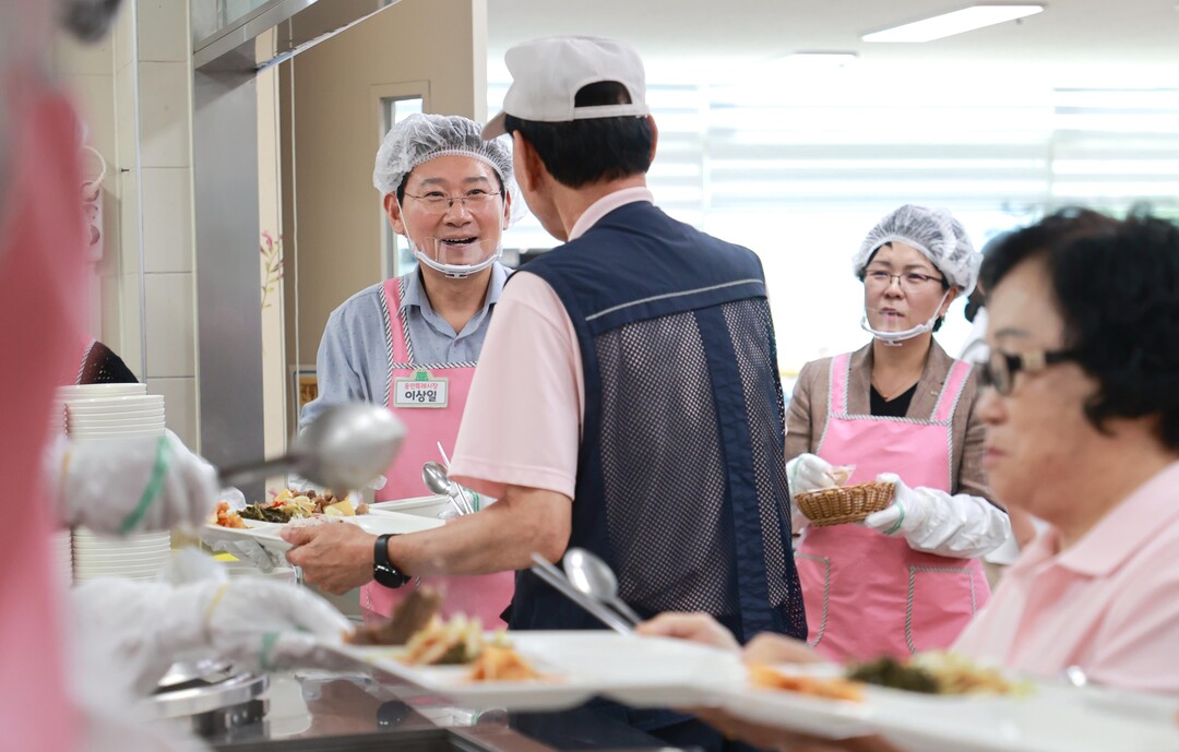 이 시장은 "식사 맛있게 드시고, 늘 건강하세요"라며 추석 인사를 하고, 몸이 불편한 어르신들의 식사를 도왔다.