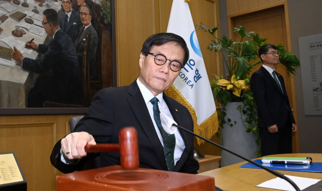 | ▲ 28일 이창용 한국은행 총재가 서울 중구 한국은행에서 열린 금융통화위원회에서 의사봉을 두드리고 있다. [뉴시스] |