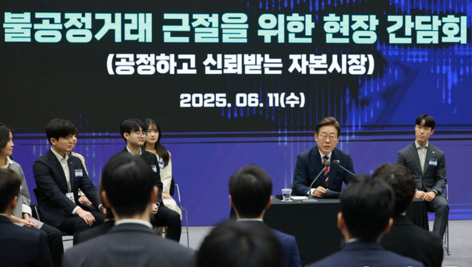 ▲ 이재명 대통령이 지난 11일 서울 영등포구 한국거래소에서 열린 현장 간담회에서 발언하고 있다. [뉴시스]