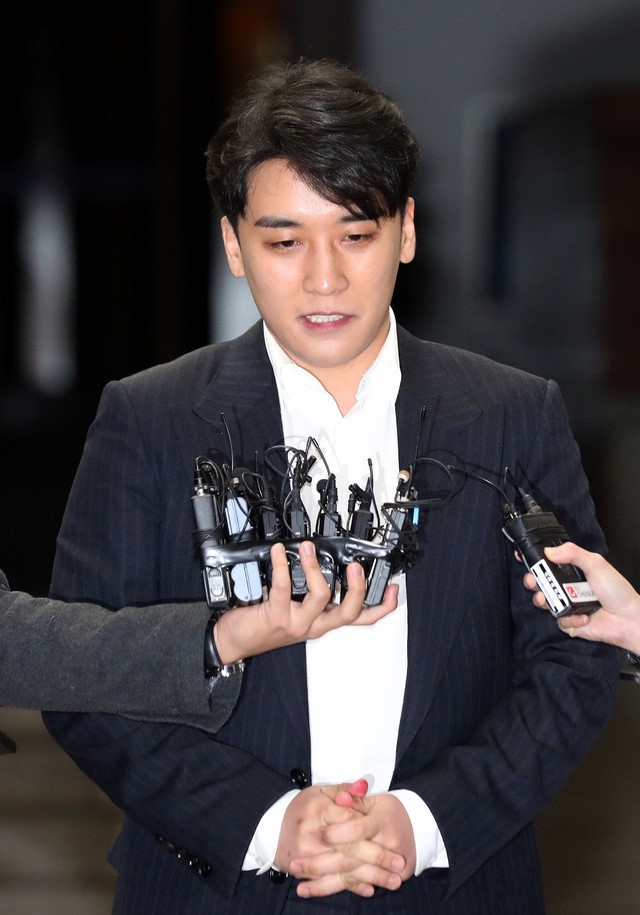 ▲ 가수 승리(본명 이승현)가 지난달 28일 오전 서울 종로구 서울지방경찰청에서 조사를 받고 나서며 취재진의 질문에 답변하고 있다. [뉴시스]