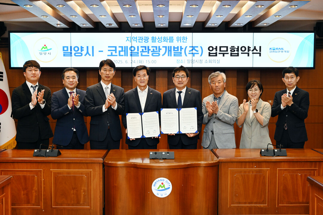 경남 밀양시는 24일 시청에서 코레일관광개발(대표 권백신)과 철도 연계를 통한 지역관광 활성화 업무협약(MOU)을 체결했다.