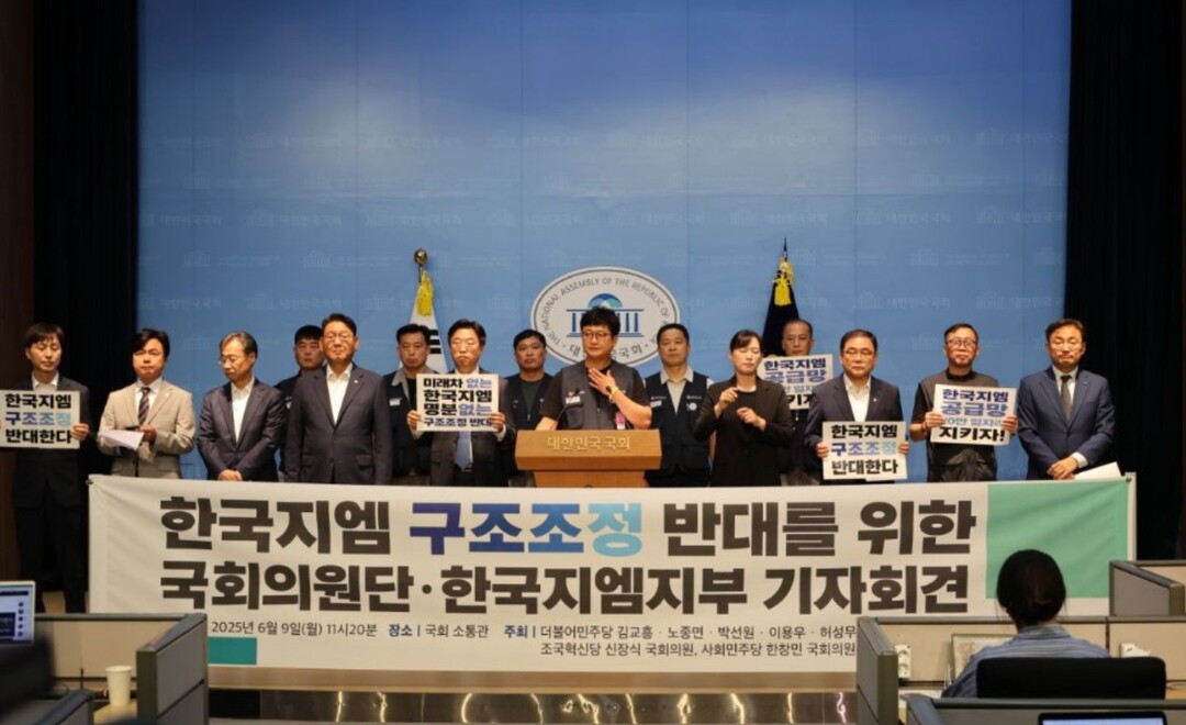 | ▲ 지난 9일 국회 소통관에서 한국GM 구조조정에 반대하는 국회의원들과 금속노조 한국GM지부가 기자회견을 하고 있다. [금속노조 제공] |