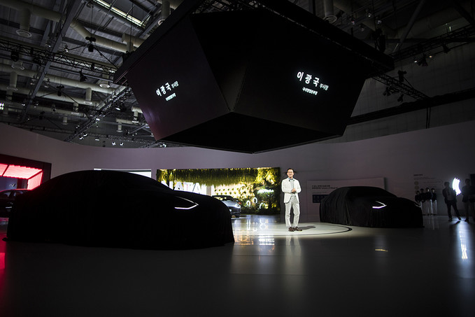이광국 현대자동차 부사장이 28일 오전 경기도 고양시 킨텍스에서 열린 2019 서울모터쇼 프레스데이 행사에서 신형 소나타 하이브리드를 공개하고 있다.