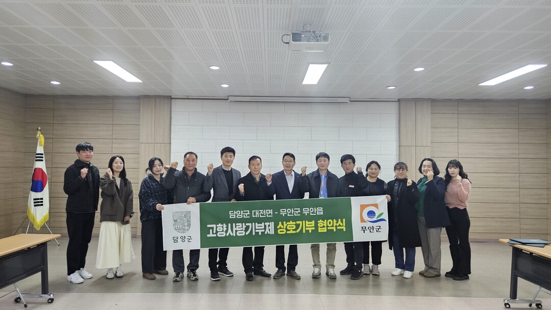 19일 담양군에 따르면 대전면과 무안읍은 이날 협약에 따라 고향사랑기부제 상호 기부와 홍보 협력, 지역 교류 활성화와 기부 문화 확산을 위한 홍보 활동 등을 추진한다.