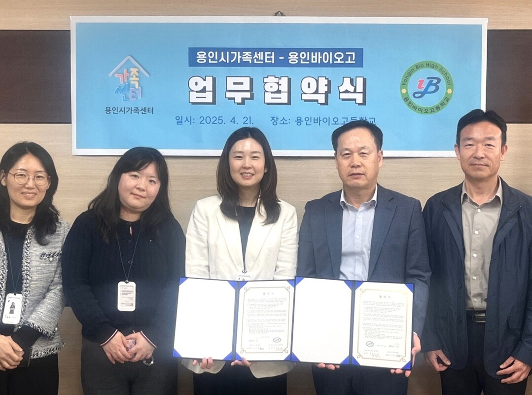 용인바이오고는 21일 용인시 가족센터와 '학생의 성장을 돕는 진로콘서트 운영 업무 협약'을 체결했다고 밝혔다.