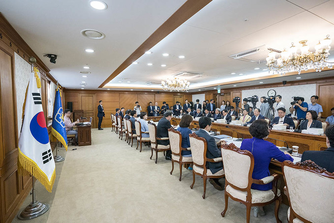 이낙연 국무총리가 23일 오후 서울 종로구 정부서울청사에서 열린 제2차 규제자유특구위원회에서 모두발언하고 있다.