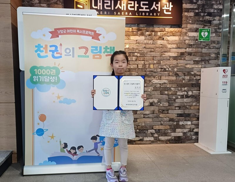 기장군은 최근 어린이 독서프로젝트 '천 권의 그림책'의 내리도서관 첫 번째 달성자가 탄생했다고 15일 밝혔다.