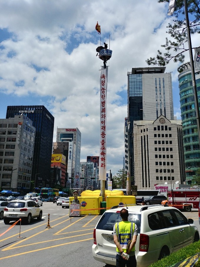 김 씨와 함께 투쟁하고 있는 이만신(54) 씨는 "김 씨는 삼성에서 부당 해고된 이래 줄곧 삼성에 맞서 싸워 왔다"면서 "정년 안에 원직 복직을 해야 하지만 이제 시간이 없어서 고공농성까지 돌입하게 됐다"고 설명했다.