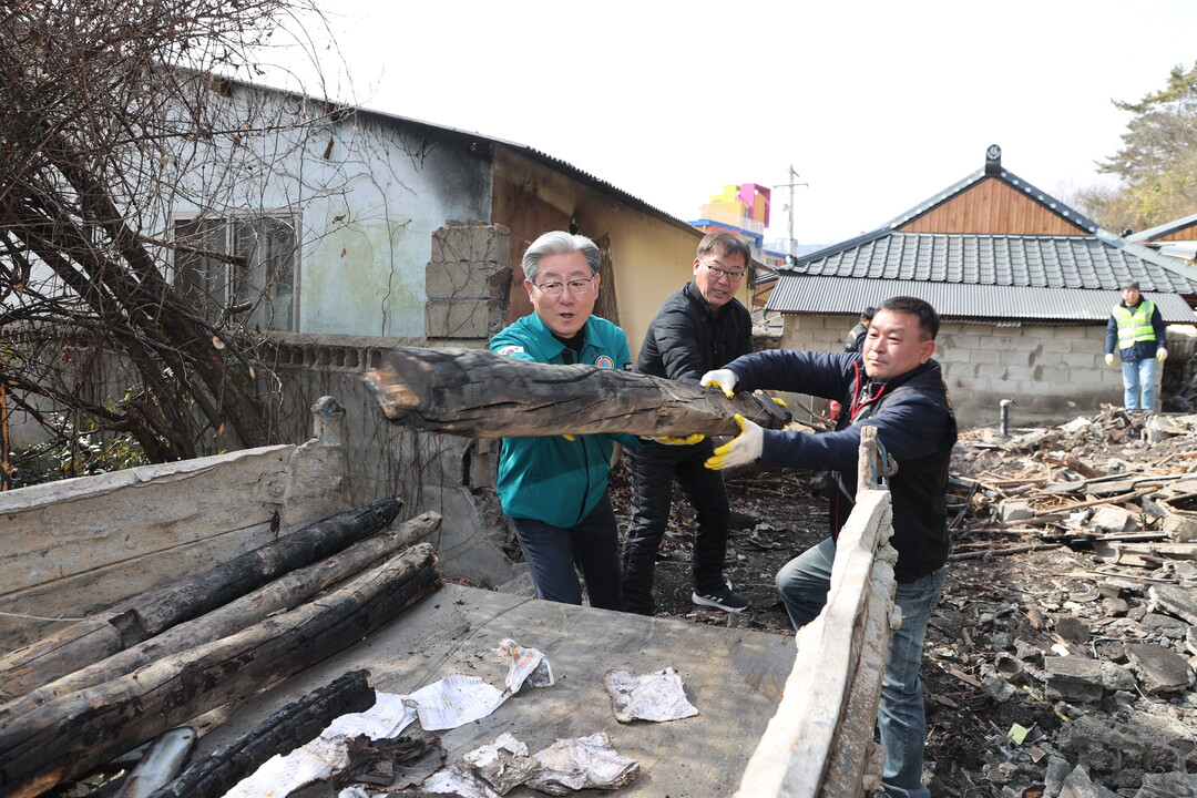 해당 주택은 지난해 8월 새벽 누전으로 추정되는 화재로 인해 전소됐다. 건사협 회원 20여 명은 굴삭기·트럭 등 장비를 동원해 피해주택에 대한 철거작업과 잔해정리 작업을 했다. 특히 이날 오태완 군수도 참여해 힘을 보탰다.