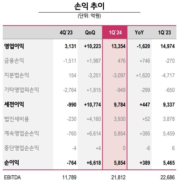 1분기 매출 21조959억 원, 영업이익 1조3354억