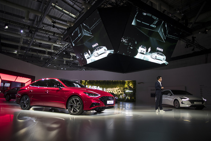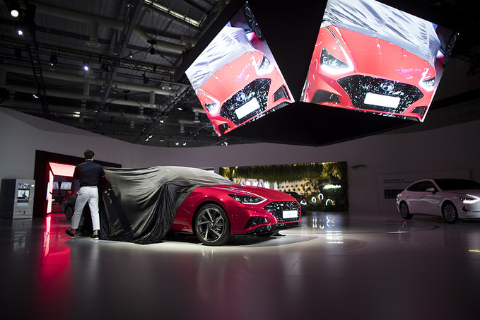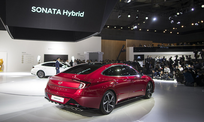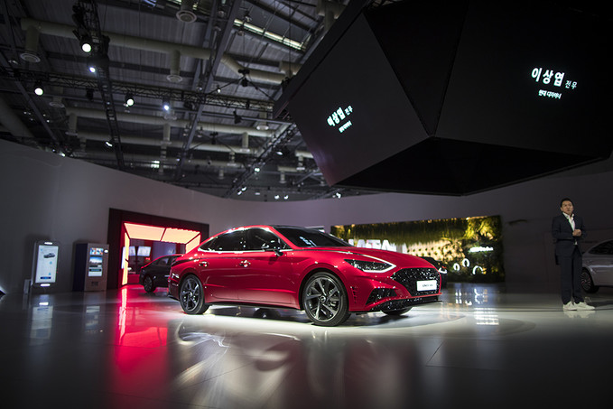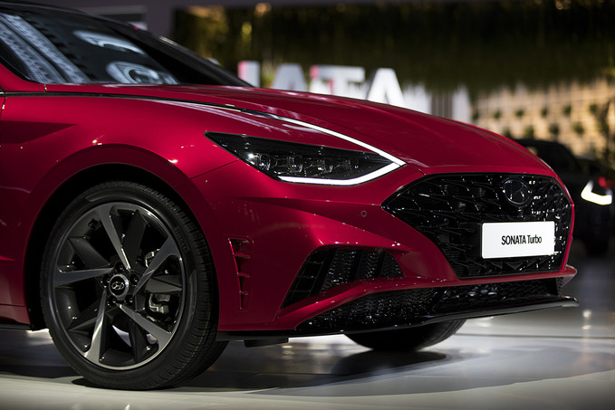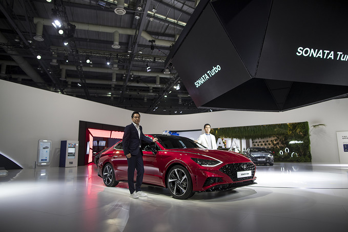 현대자동차가 2019 서울모터쇼 프레스데이 행사에서 공개한 신형 소나타 터보.