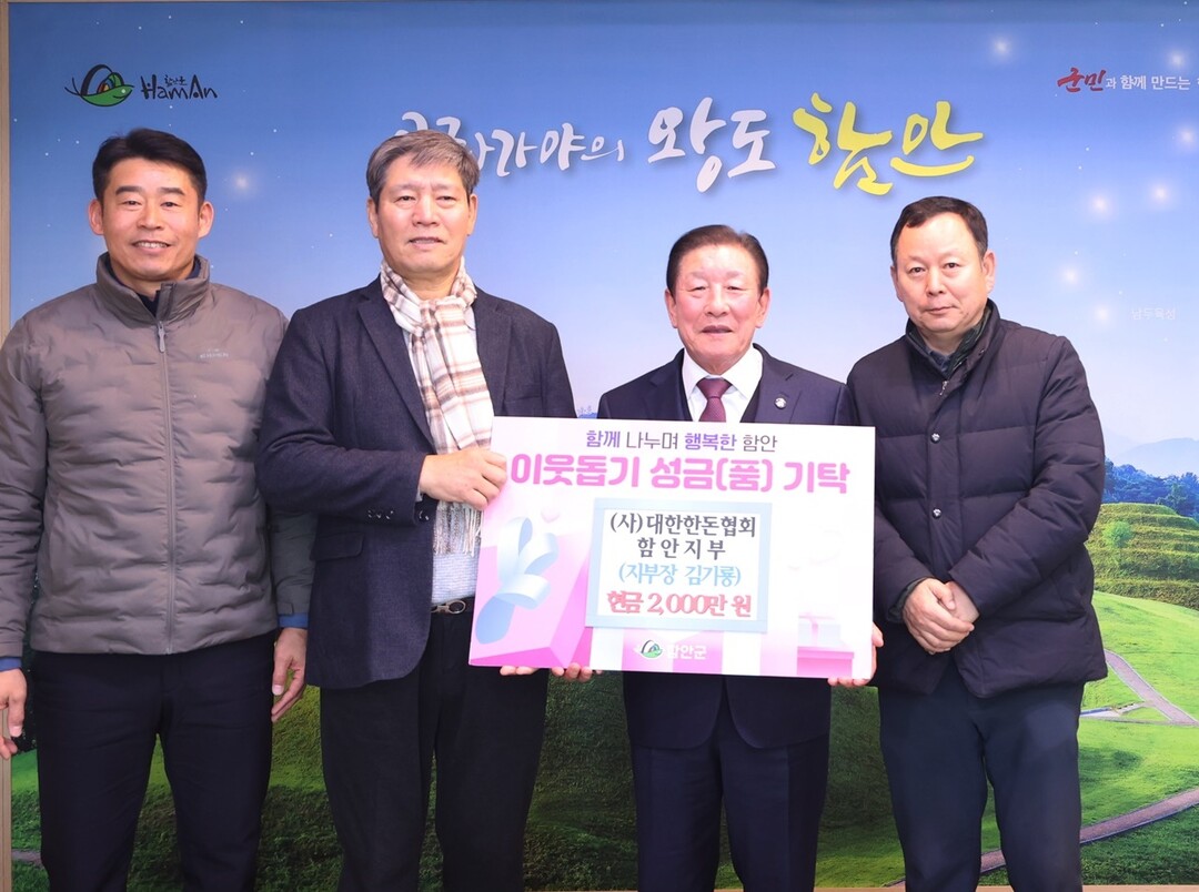 경남 함안군은 10일 사단법인 대한한돈협회 함안지부(지부장 김기룡)에서 어려운 이웃을 위해 현금 2000만 원을 기부했다고 밝혔다.