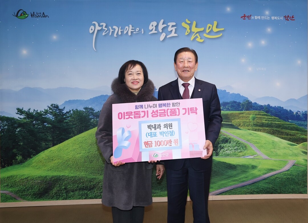 함안군은 10일 박내과의원(대표 박인철)에서 어려운 이웃을 위해 현금 1000만 원을 기부했다고 밝혔다. 성금은 공동모금회를 통해 어려운 이웃에게 전달될 예정이다.
