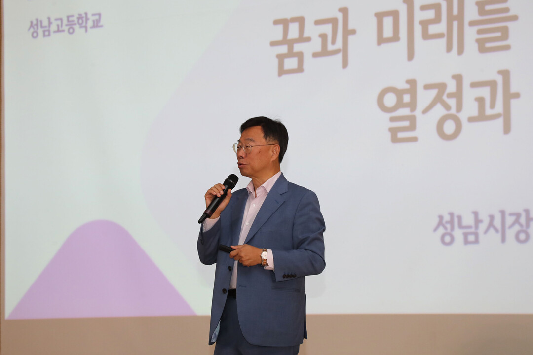 신상진 경기 성남시장은 30일 오후 자율형 공립고인 성남고교 2층 강당에서 '꿈과 미래를 위한 열정과 도전'을 주제로 특별 강연을 했다.