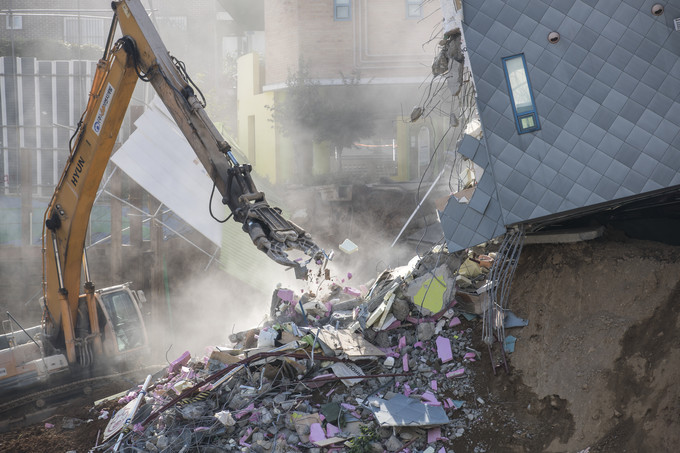 9일 오후 서울 동작구 상도유치원 철거 작업이 진행되고 있다. 상도동 다세대주택 공사장 흙막이가 무너지면서 건물이 붕괴된 상도유치원 철거 작업은 10일 오후까지 진행될 예정이다.