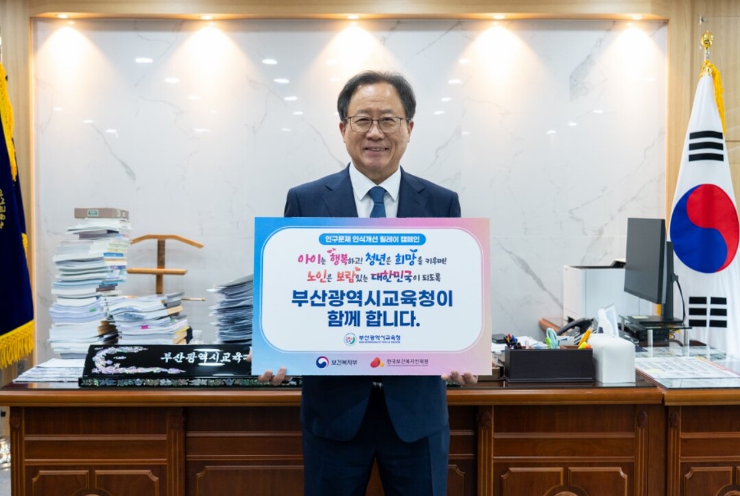 김석준 부산시교육감은 20일 보건복지부와 한국보건복지인재원이 공동으로 추진하는 '인구문제 인식개선 릴레이 캠페인'에 동참했다.