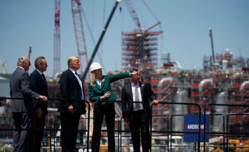 ▲ 도널드 트럼프 미국 대통령이 1차 집권기인 2019년 5월 루이지애나주 핵베리의 캐머런 LNG 수출기지를 방문해 둘러보고 있다. [뉴시스]