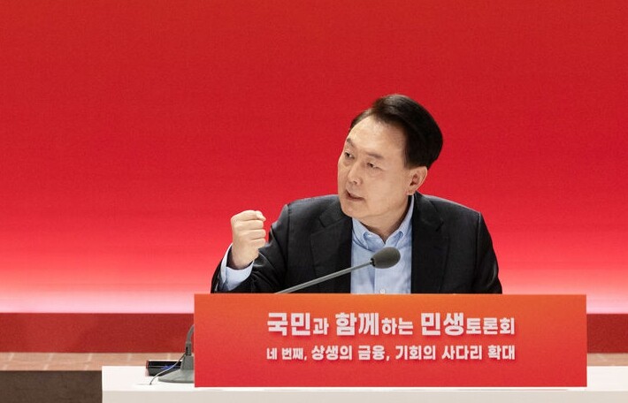 | ▲ 윤석열 대통령이 17일 서울 여의도 한국거래소에서 민생토론회를 주재하며 발언하고 있다. [대통령실 제공] |