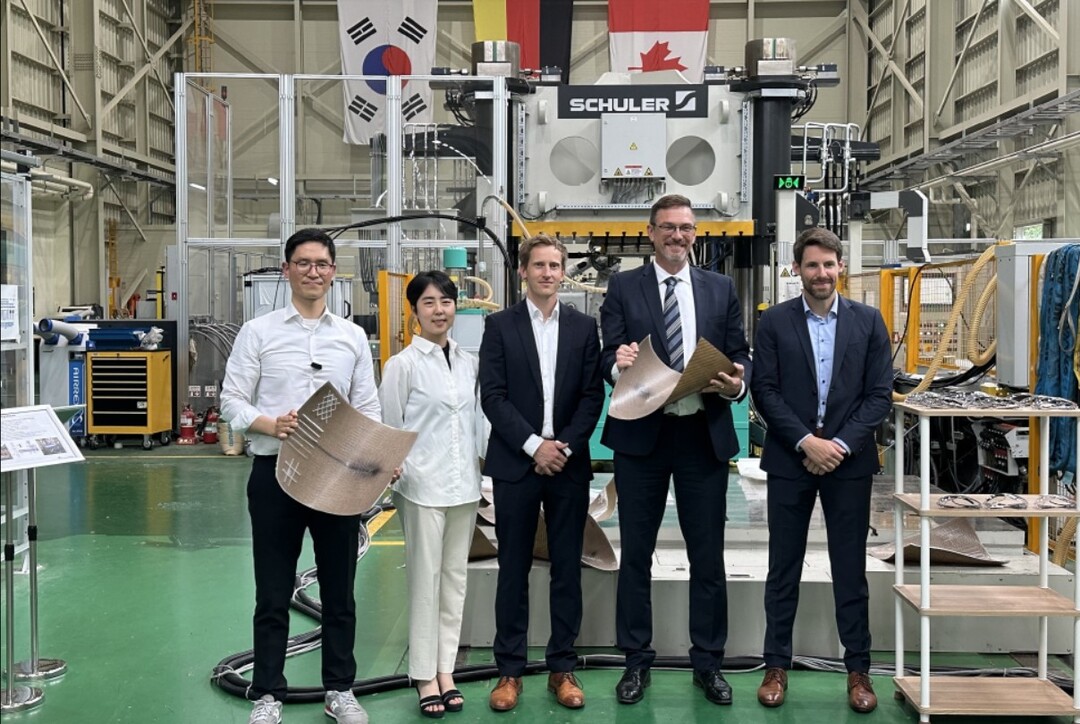 UNIST는 자율주행차용 초경량 부품 기술을, 프라운호퍼 ICT는 섬유강화 복합재 설계와 고속성형 기술을 각각 소개했다. 독일 해석 전문기업 시뮤턴스(SIMUETENCE)는 실제 성형된 제품과 시뮬레이션 결과를 현장에서 비교해가며 해석 정확도를 선보였다.