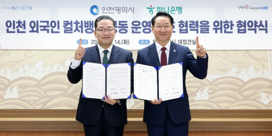 하나은행은 인천광역시와 함께 '인천 외국인 컬처뱅크' 공동 운영 업무협약을 체결했다고 14일 밝혔다. 인천에 거주하는 외국인들이 금융과 문화를 매개로 지역사회 구성원으로 함께 어울리며 자립할 수 있는 거점을 제공하려는 취지다.