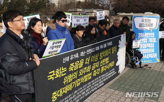 ▲ 지난해 12월20일 오전 서울 여의도 국회 정문 앞에서 열린 '산재 유가족, 재난·안전사고 피해 가족 공동 기자회견'에서 스텔라데이지호 실종 선원 가족 허경주씨가 발언하고 있다. [뉴시스]