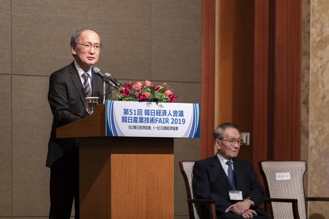나가미네 야스마사 주한 일본 대사가 24일 오후 서울 소공동 롯데호텔에서 열린 제51회 한일경제인회의에 참석, 축사를 하고 있다.