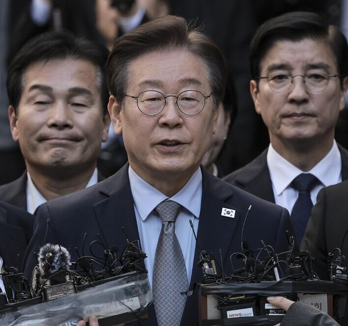 | ▲ 더불어민주당 이재명 대표가 15일 서울 서초구 서울중앙지방법원에서 열린 공직선거법 위반 사건 관련 1심 선고 재판을 마친 뒤 입장을 밝히고 있다. [뉴시스] |