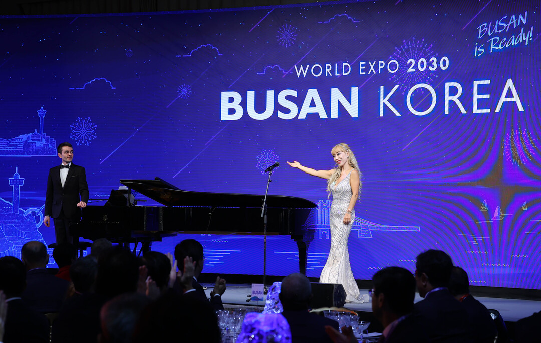 이날 행사에는 드미트리 케르켄테즈 BIE 사무총장과 유치도시 투표를 진행할 각국의 대표들, 공동유치위원장을 맡고 있는 한덕수 총리, 최태원 회장, 장성민 대통령 특사, 박형준 부산시장, 세계적 성악가 조수미 소프라노 등 총 200여명이 참석했다.