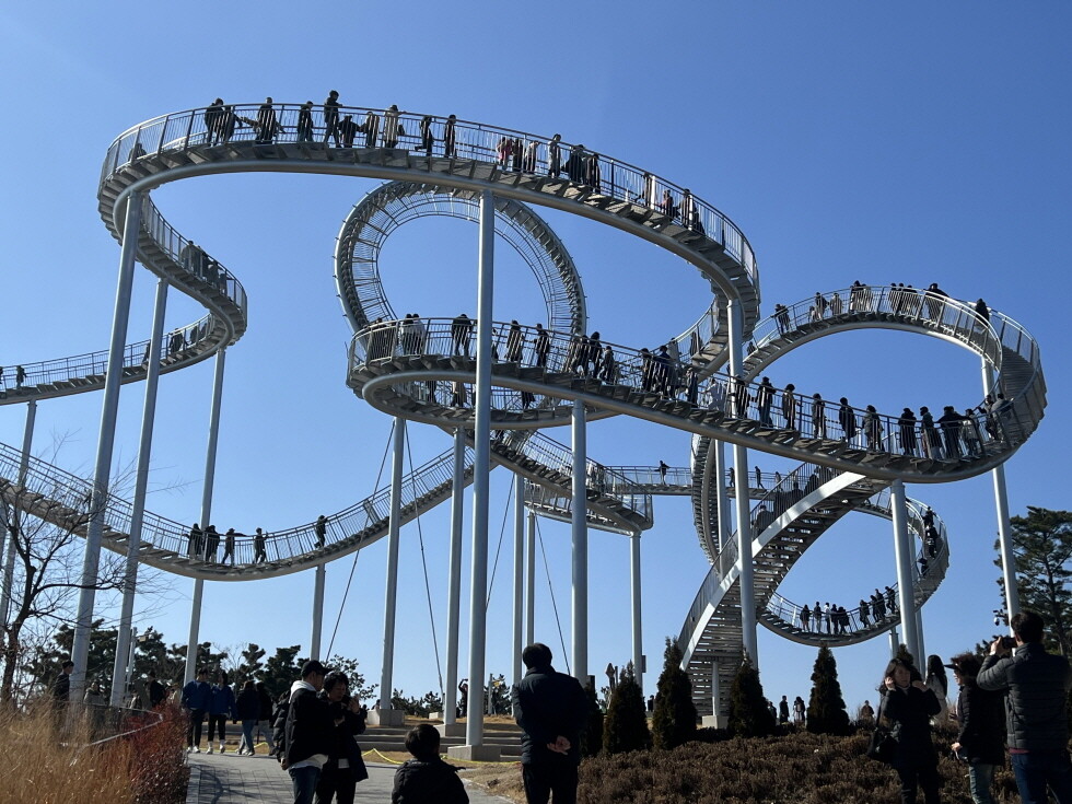▲ 환호공원 스페이스워크 위를 걷고 있는 관광객들. [포항시 제공]