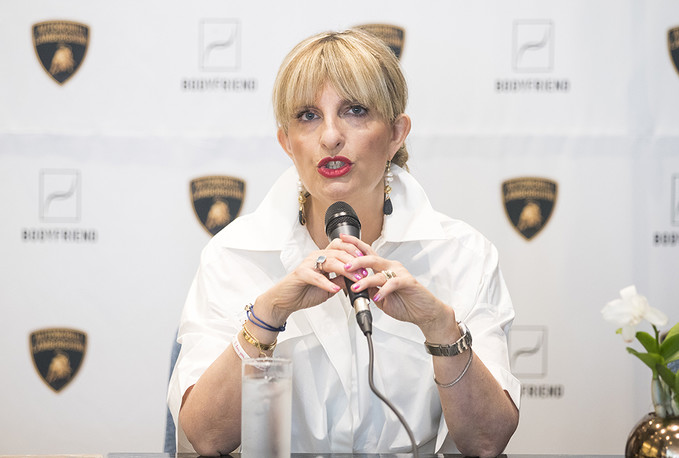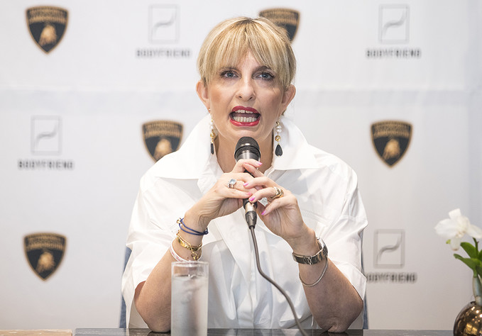 카티아 바시 람보르기니 최고마케팅책임자(CMO)가 5일 오전 서울 강남구 카페 드 바디프랜드 청담에서 열린 람보르기니 안마의자 전용관 'Lounge S' 오픈 기자간담회에서 질문에 답하고 있다.