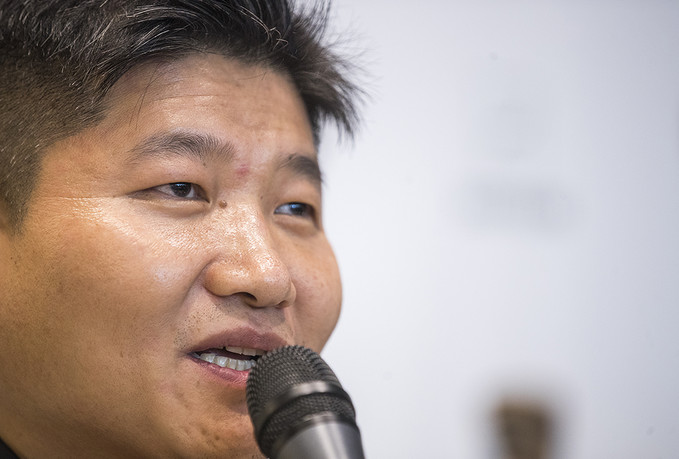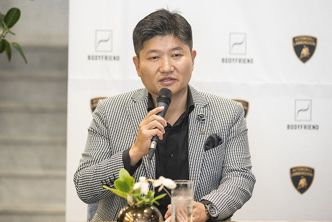 박상현 바디프랜드 대표이사가 5일 오전 서울 강남구 카페 드 바디프랜드 청담에서 열린 람보르기니 안마의자 전용관 'Lounge S' 오픈 기자간담회에서 질문에 답하고 있다.