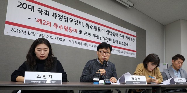 시민단체 세금도둑잡아라와 좋은예산센터, 투명사회를 위한 정보공개센터, 탐사보도 전문매체 뉴스타파는 19일 서울 중구 성공회빌딩에서 기자회견을 열고 20대 국회의 특경비 및 특수활동비(특활비) 집행내용을 공개했다.