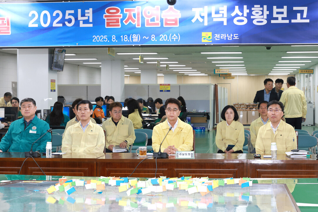 김태균 전라남도의회 의장이 19일 '2025년 을지연습 종합상황실'을 방문해 훈련 진행 현장을 참관하고 공무원을 격려했다.