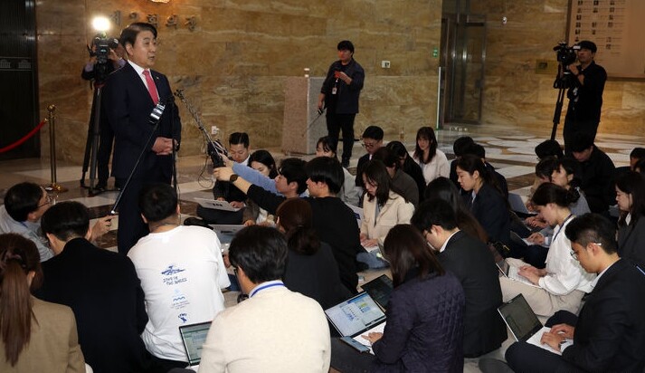 이동관 위원장은 국회에서 기자들과 만나 "숫자를 앞세워 탄핵하겠다는 야당이 민심의 탄핵을 받을 것"이라고 비판했다.